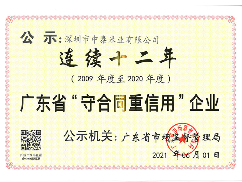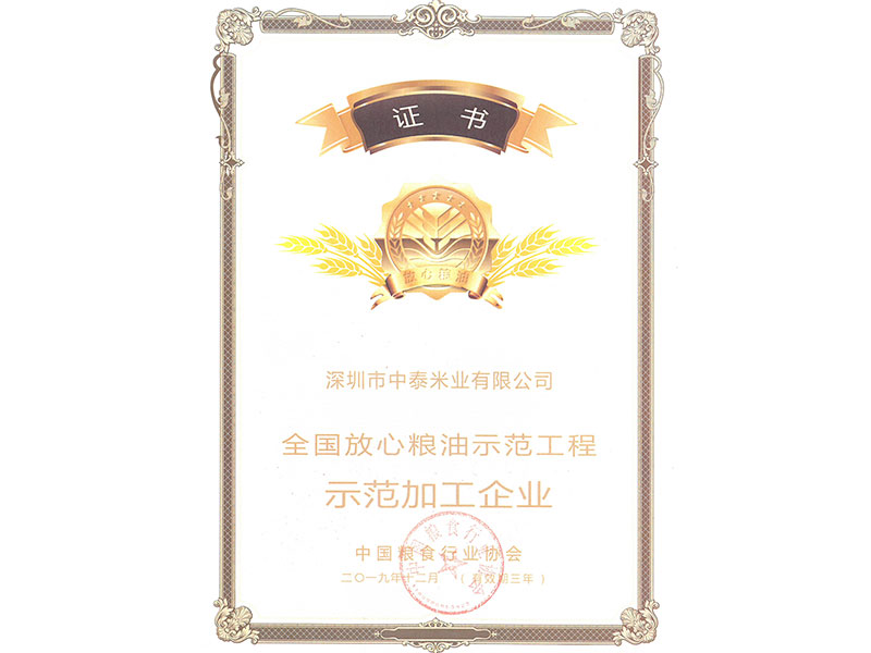 放心粮油示范工程加工企业证书