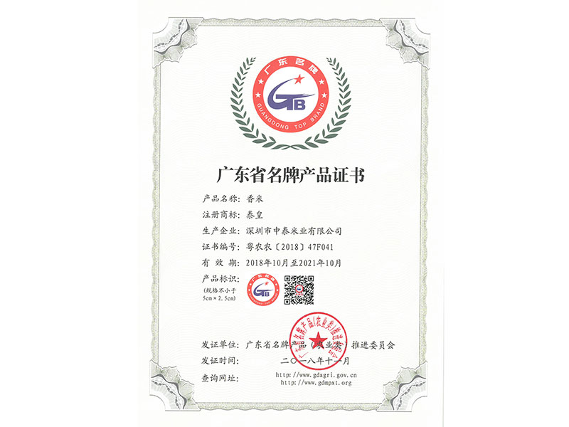 广东省名牌产品证书