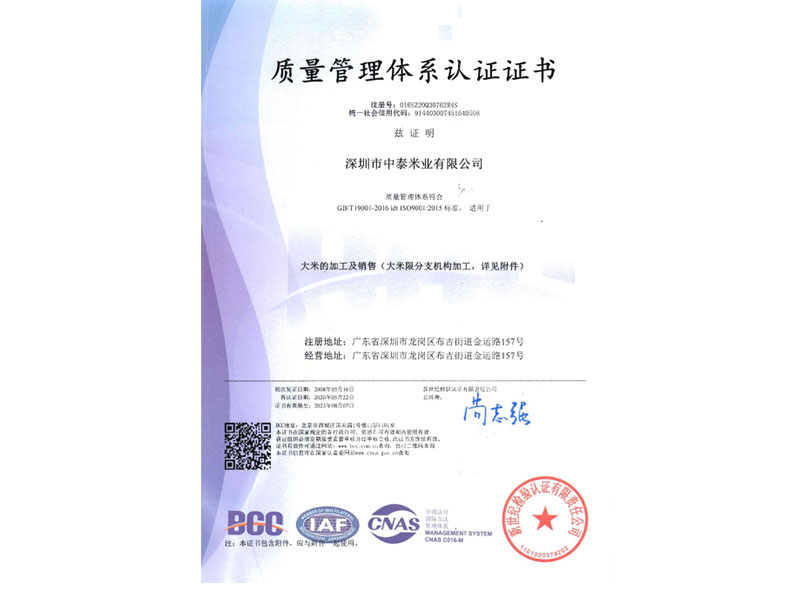 质量体系认证管理证书